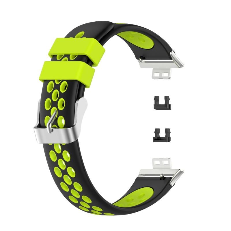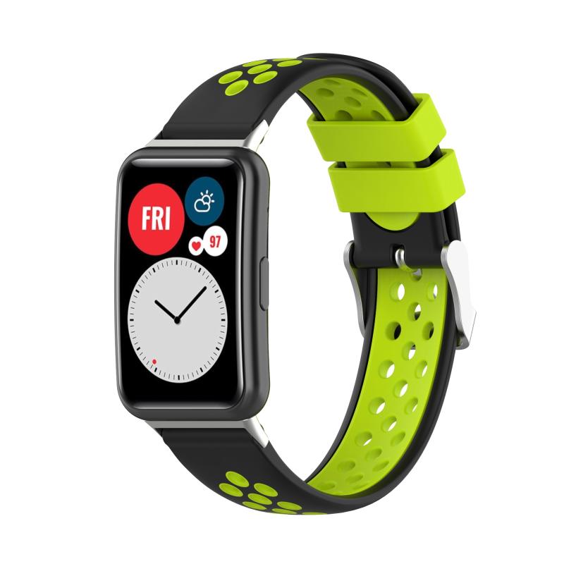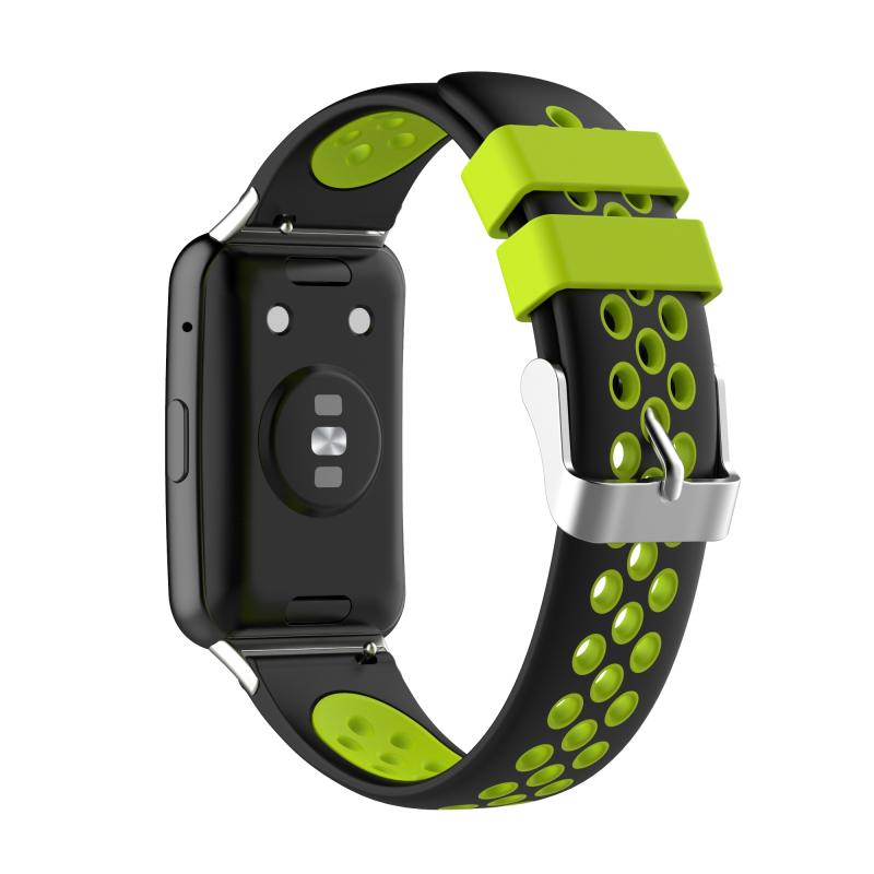 For Huawei Watch Fit 18mm Clasp Style Silicone Two-color Watch Band(Black+Green)