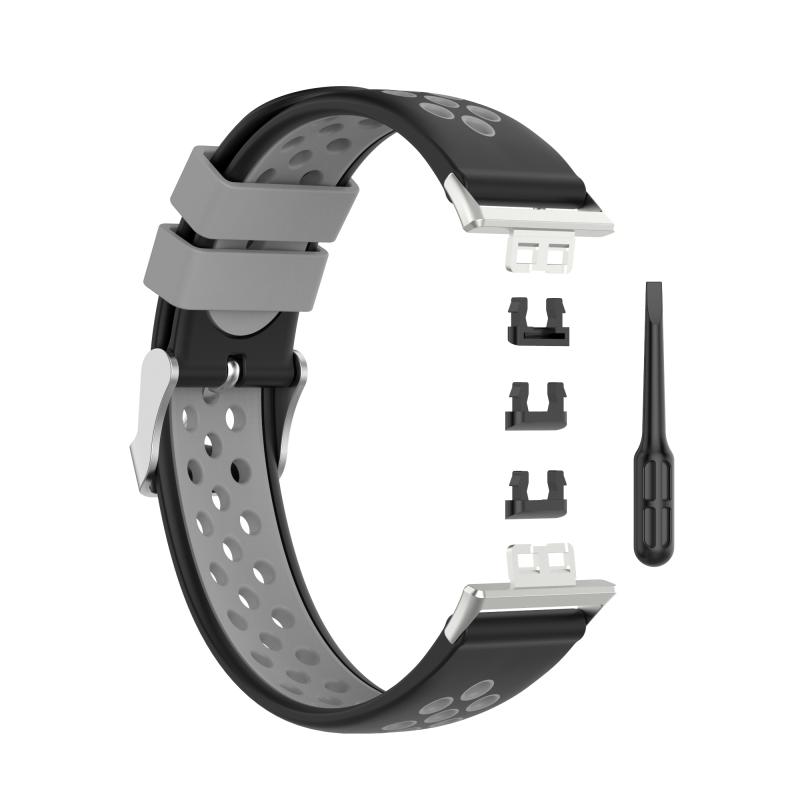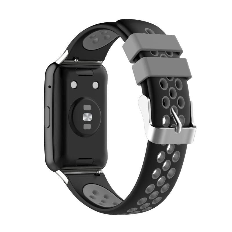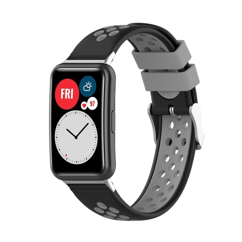 For Huawei Watch Fit 18mm Clasp Style Silicone Two-color Watch Band(Black+Grey)