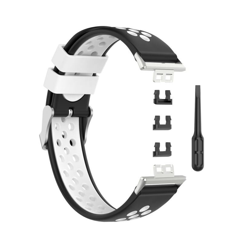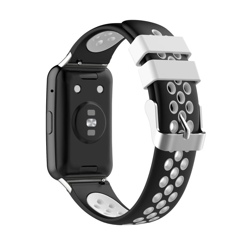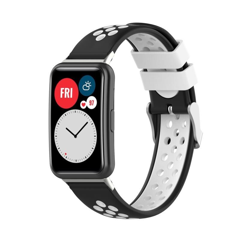 For Huawei Watch Fit 18mm Clasp Style Silicone Two-color Watch Band(Black+White)