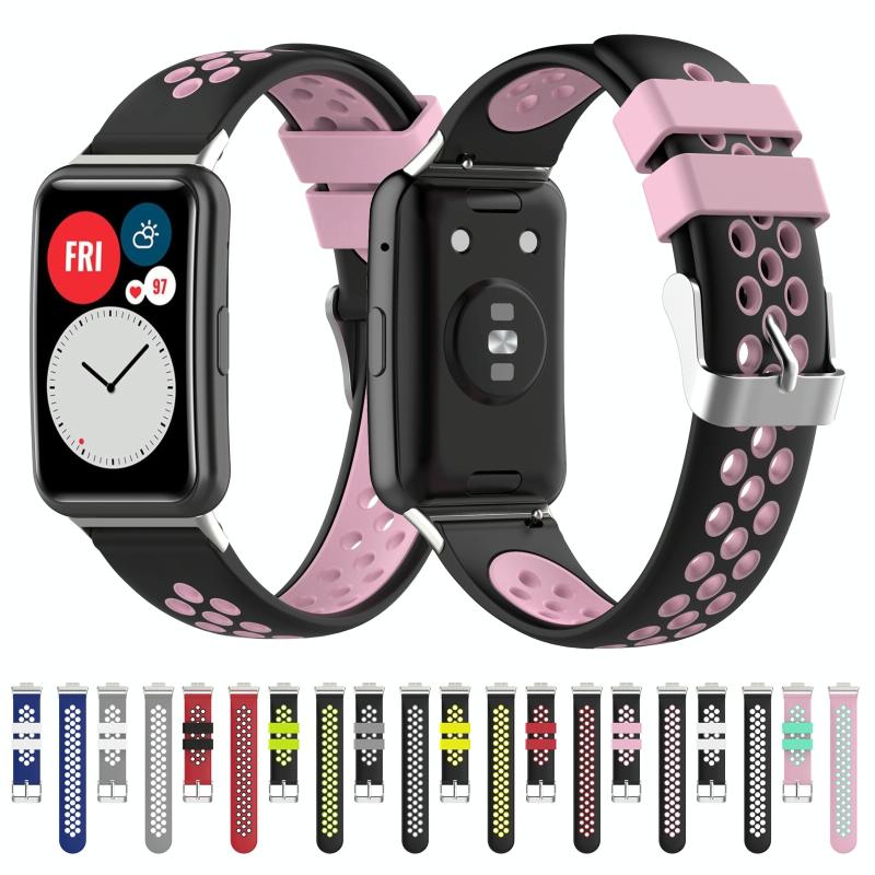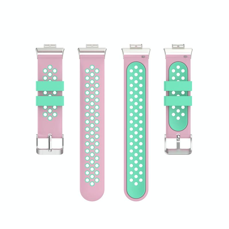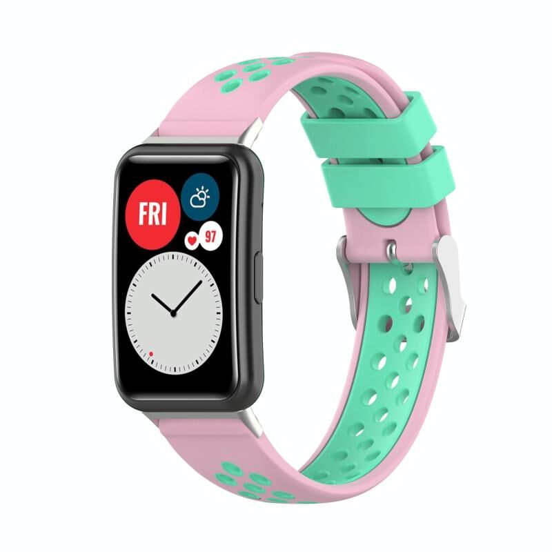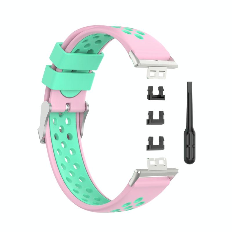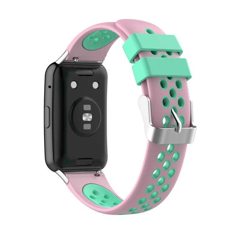 For Huawei Watch Fit 18mm Clasp Style Silicone Two-color Watch Band(Pink+Green)