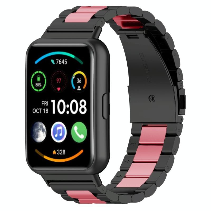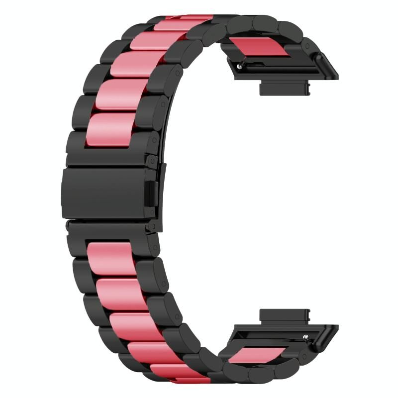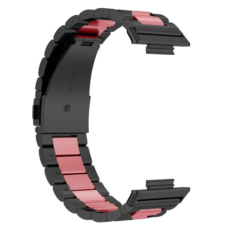 Για το Huawei Watch Fit 2 Τρεις χάντρες μεταλλική ζώνη ρολογιού από ανοξείδωτο χάλυβα (μαύρο ροζ)