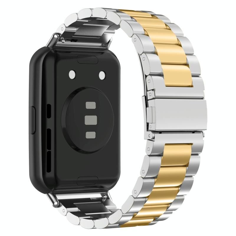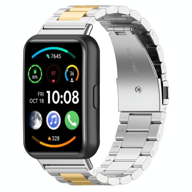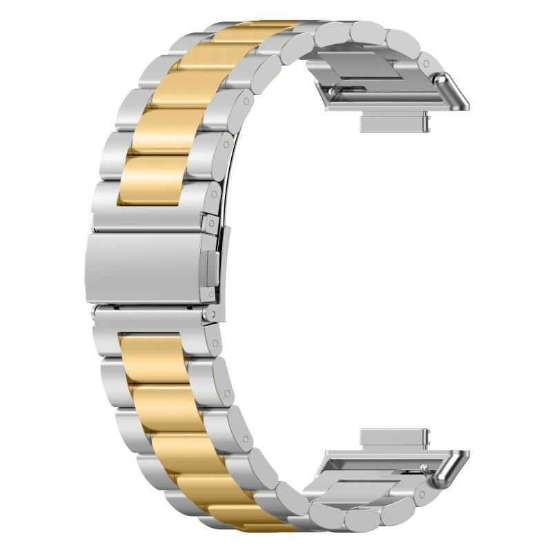 Για το Huawei Watch Fit 2 Τρεις χάντρες μεταλλική ζώνη ρολογιού από ανοξείδωτο χάλυβα (ασημένιο χρυσό)