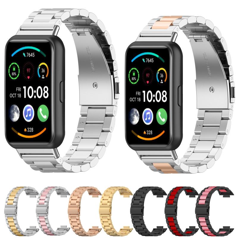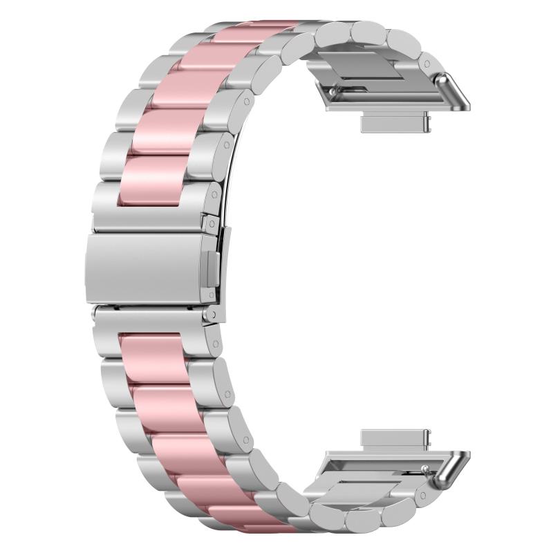 For Huawei Watch Fit 2 Three-bead Metal Stainless Steel Watch Band(Silver Pink)