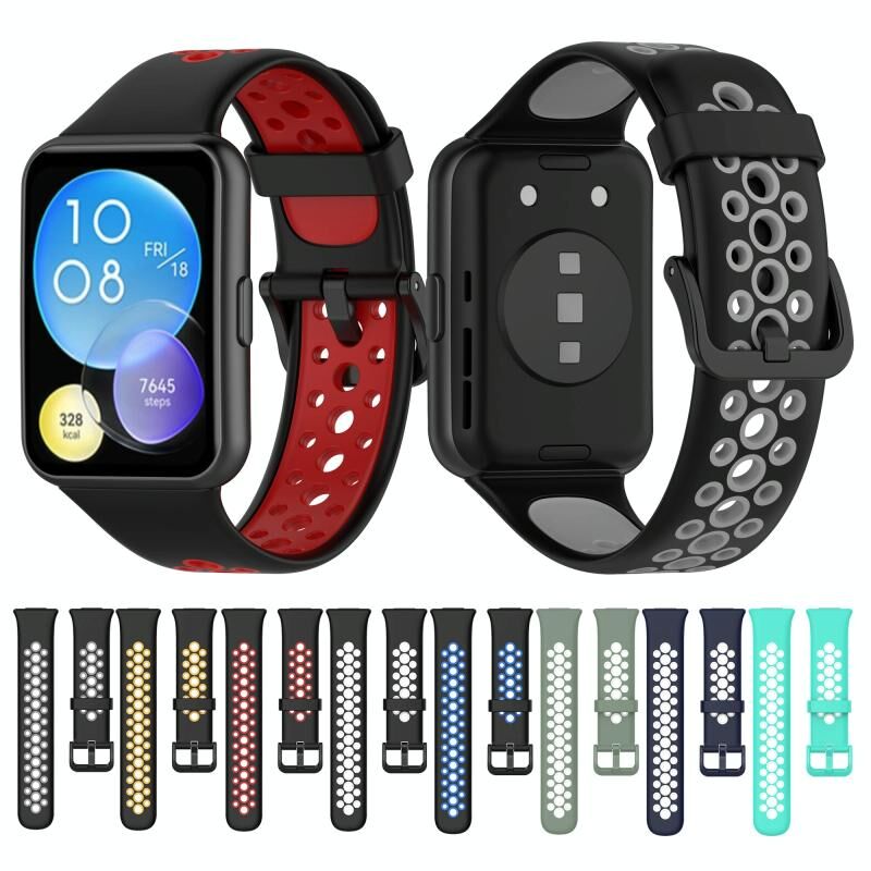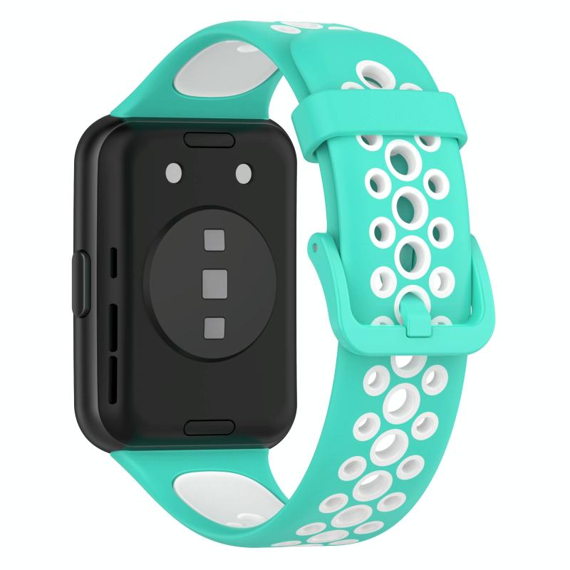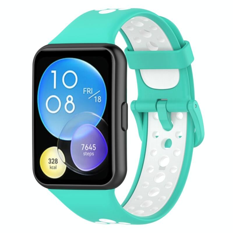 For Huawei Watch Fit 2 Two-Color Breathable Silicone Watch Band(Cyan White)