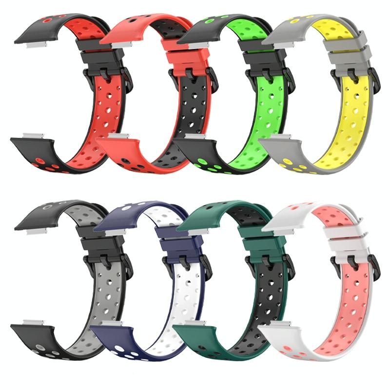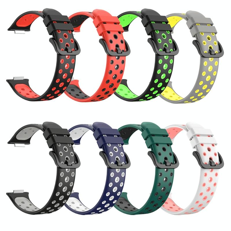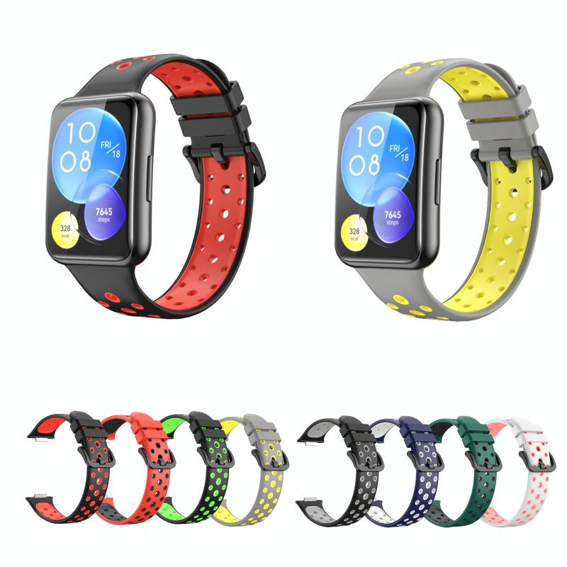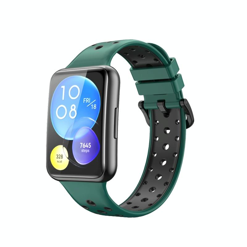 For Huawei Watch Fit 2 Two-Color Perforated Silicone Watch Band(Green+Black)