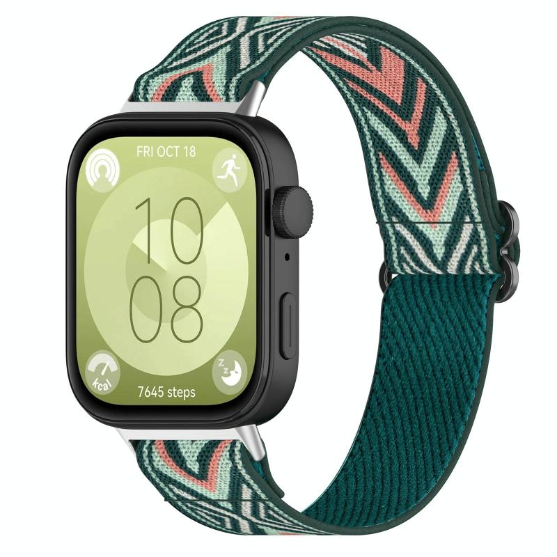 For Huawei Watch Fit 3 Ethnic Style Elastic Nylon Watch Band(Green Arrow)
