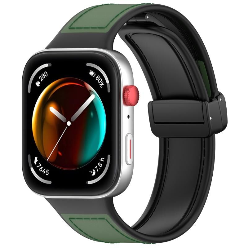 Για Huawei Watch Fit 3 Πτυσσόμενη πόρπη σιλικόνης προσαρμοσμένη δερμάτινη ζώνη ρολογιού (πράσινο)