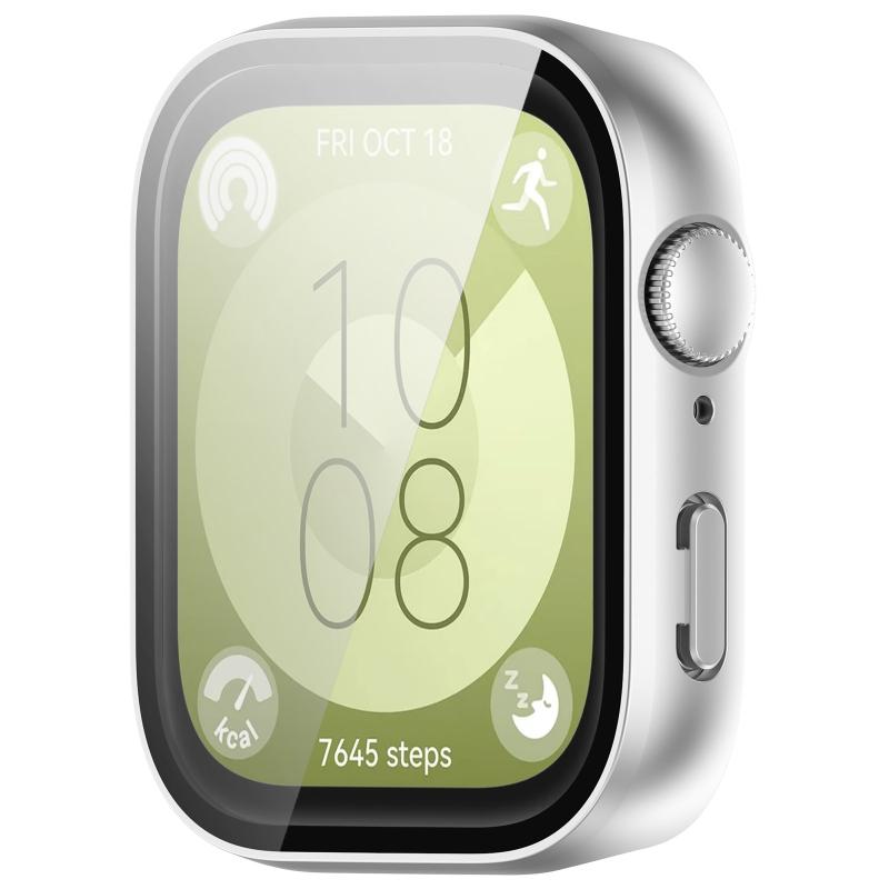 For Huawei Watch Fit 3 PC + Tempered Film Integrated Watch Protective Case(Matte Silver)