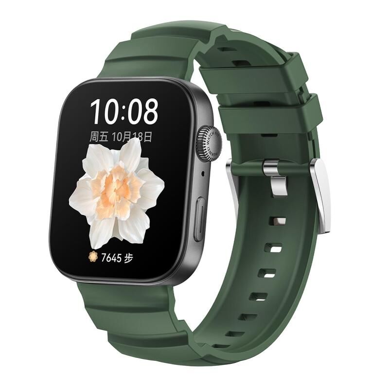 For Huawei Watch Fit 3 Silver Buckle Silicone Watch Band(Dark Green)