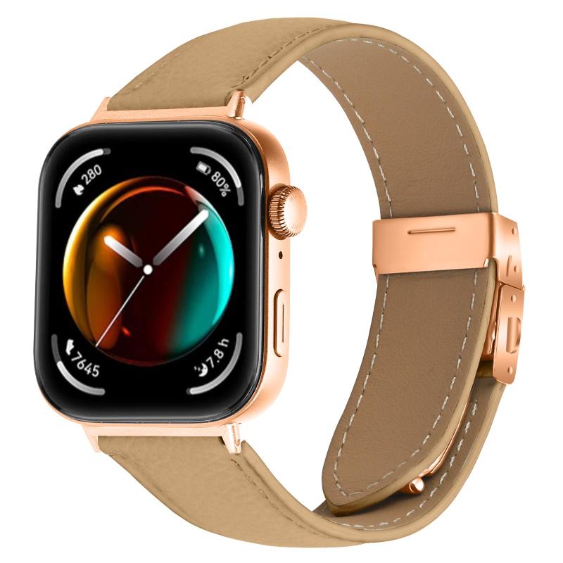 For Huawei Watch Fit 4 / Fit 4 Pro / Fit 3 Lychee Texture Rose Gold Turtle Back Buckle Leather Watch Band(Camel)