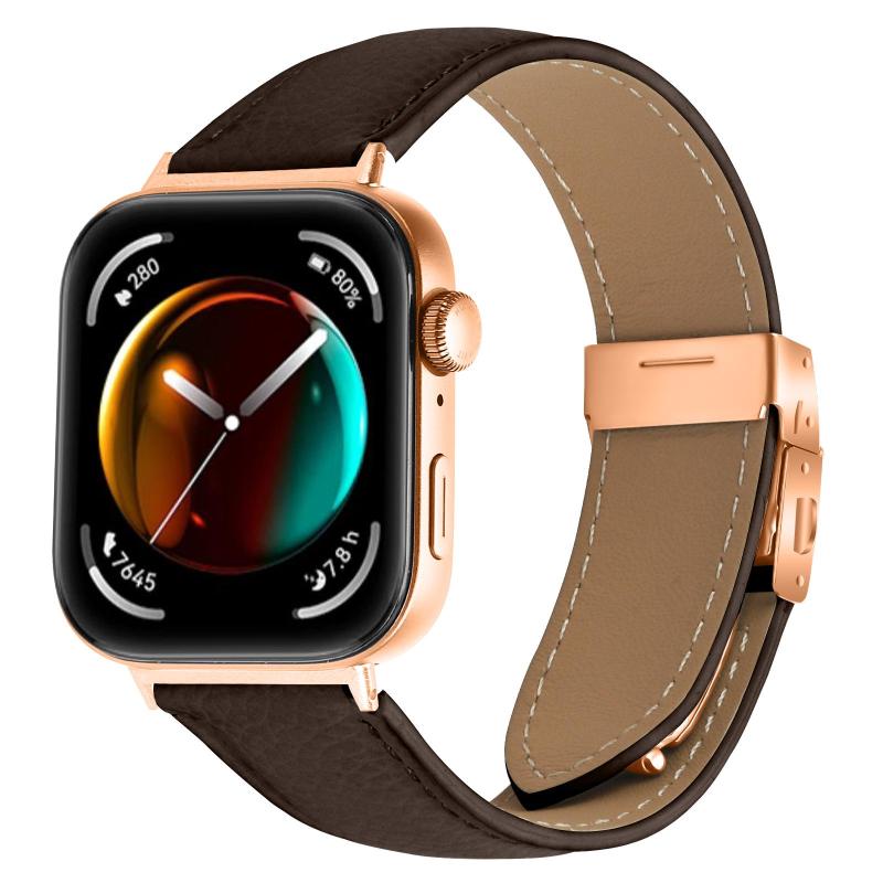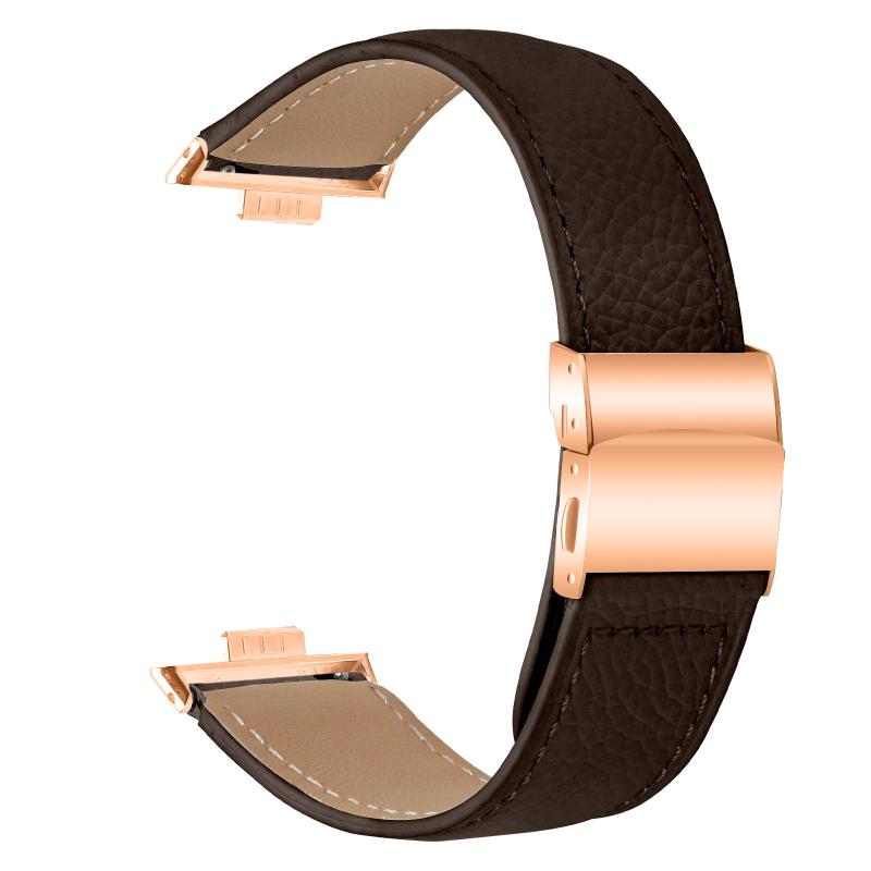 For Huawei Watch Fit 4 / Fit 4 Pro / Fit 3 Lychee Texture Rose Gold Turtle Back Buckle Leather Watch Band(Coffee Color)