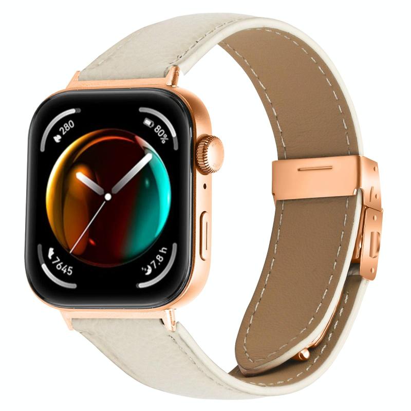For Huawei Watch Fit 4 / Fit 4 Pro / Fit 3 Lychee Texture Rose Gold Turtle Back Buckle Leather Watch Band(Creamy White)
