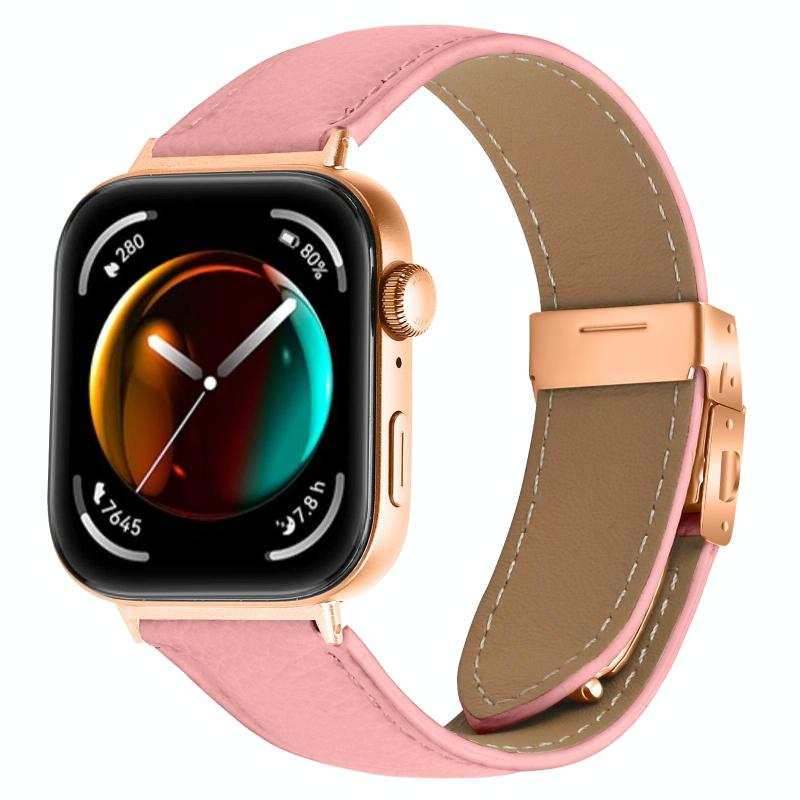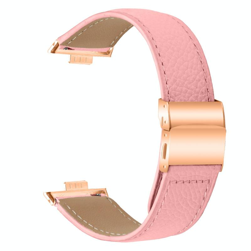 For Huawei Watch Fit 4 / Fit 4 Pro / Fit 3 Lychee Texture Rose Gold Turtle Back Buckle Leather Watch Band(Pink)