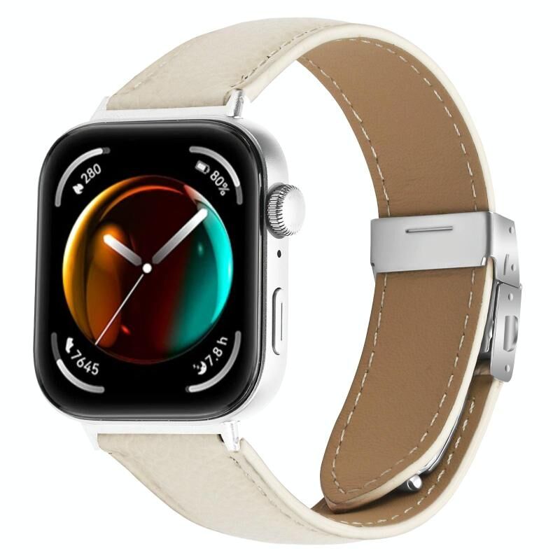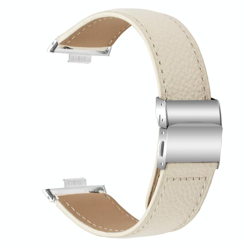 For Huawei Watch Fit 4 / Fit 4 Pro / Fit 3 Lychee Texture Silver Turtle Back Buckle Leather Watch Band(Creamy White)