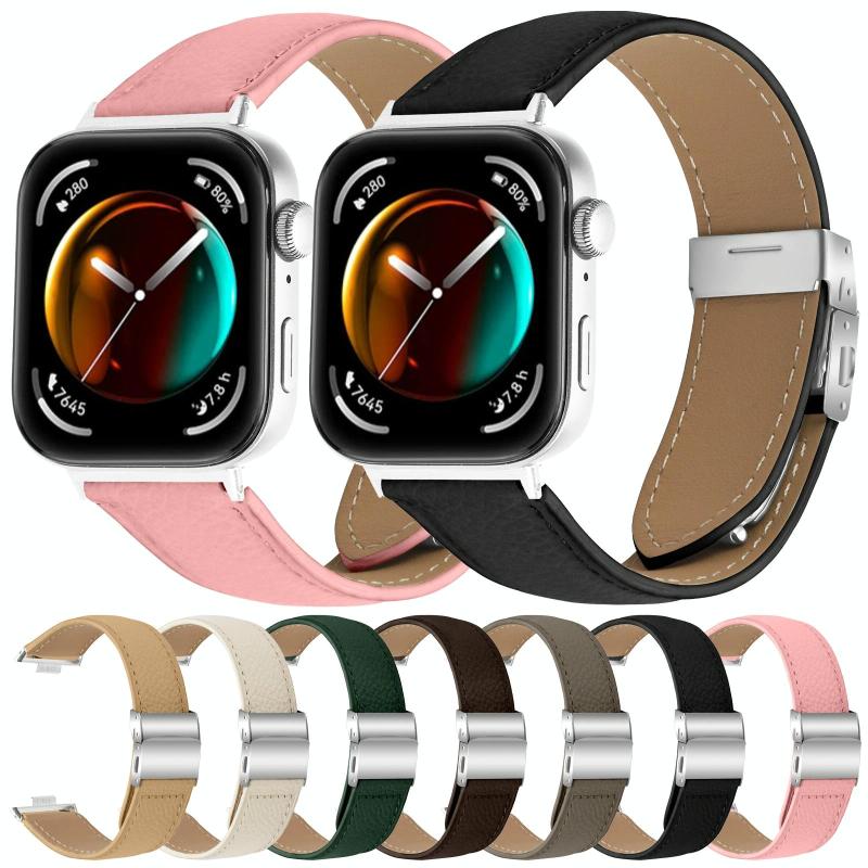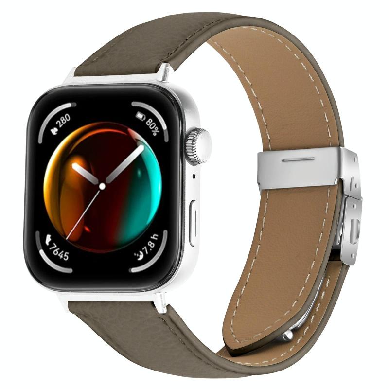 For Huawei Watch Fit 4 / Fit 4 Pro / Fit 3 Lychee Texture Silver Turtle Back Buckle Leather Watch Band(Gray)