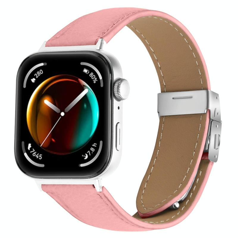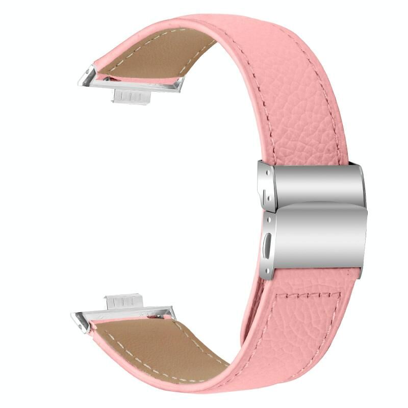 For Huawei Watch Fit 4 / Fit 4 Pro / Fit 3 Lychee Texture Silver Turtle Back Buckle Leather Watch Band(Pink)