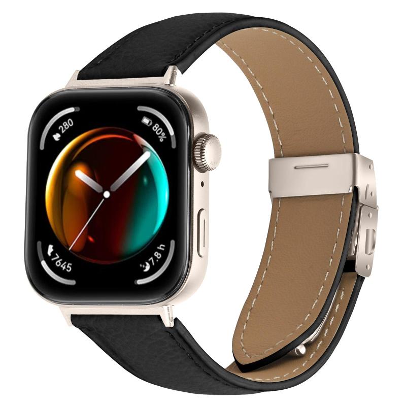 For Huawei Watch Fit 4 / Fit 4 Pro / Fit 3 Lychee Texture Starlight Turtle Back Buckle Leather Watch Band(Black)