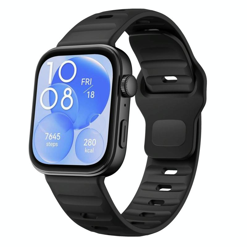For Huawei Watch Fit 4 / Fit 4 Pro / Fit 3 Wave Reverse Buckle Silicone Watch Band(Black)