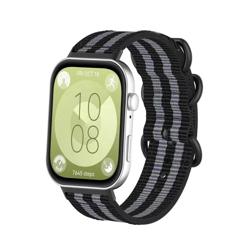 Για Huawei Watch Fit 4 Pro / Fit 4 / Fit 3 Λουράκι Νάιλον με Αγκράφα Υφασμάτινου Δακτυλίου (Μαύρο Γκρι)