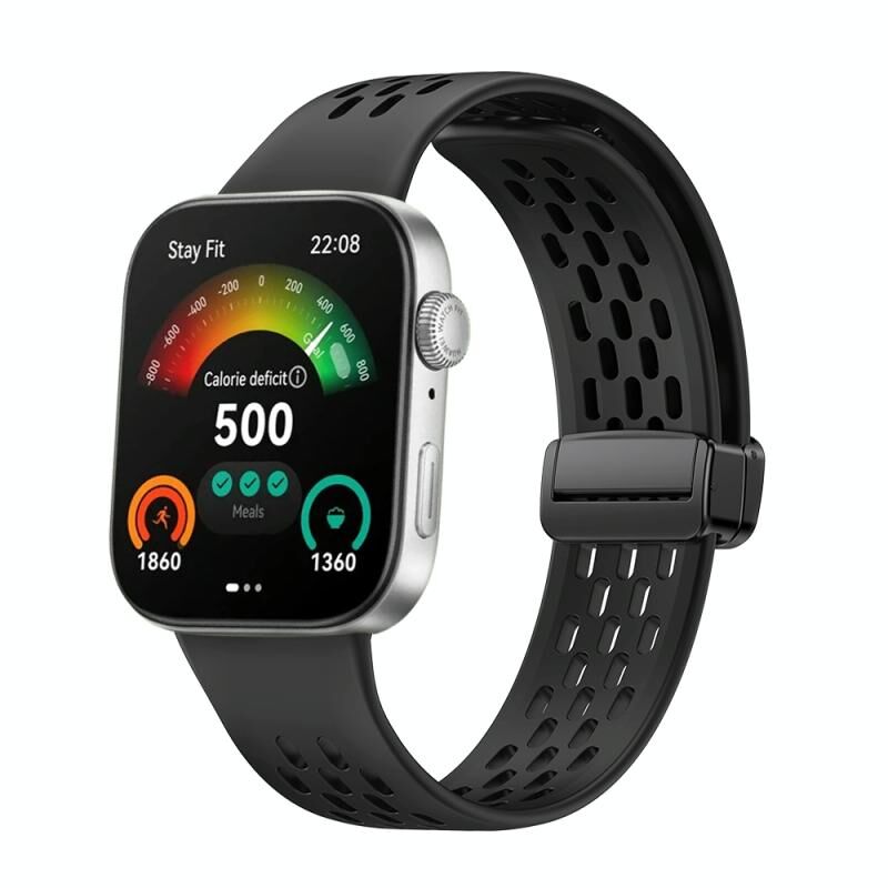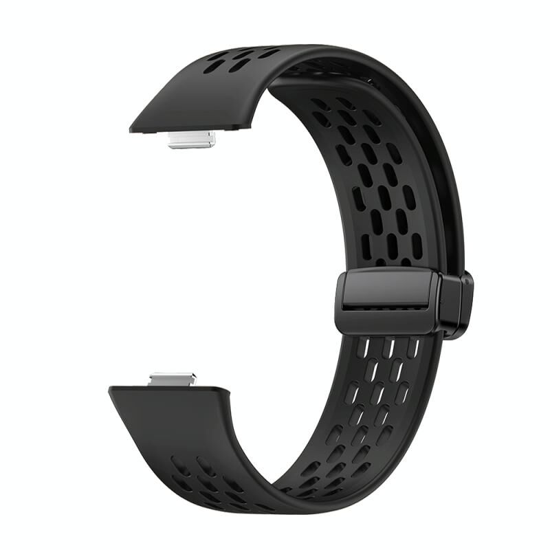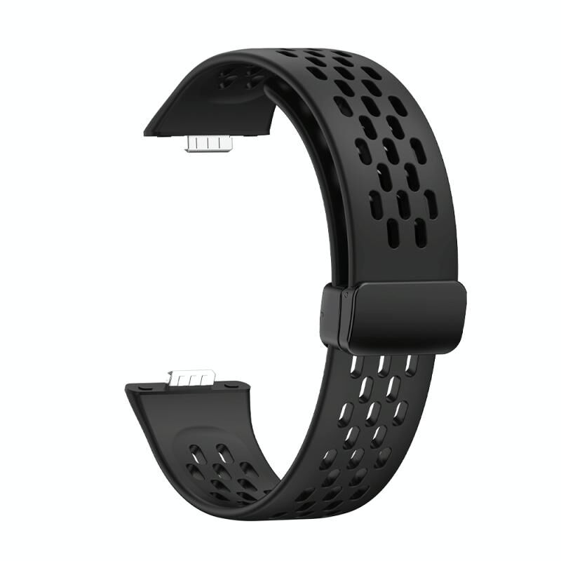 For Huawei Watch Fit 4 Pro / Fit 4 / Fit 3 Hole Style Magnetic Folding Black Buckle Silicone Watch Band(Black)