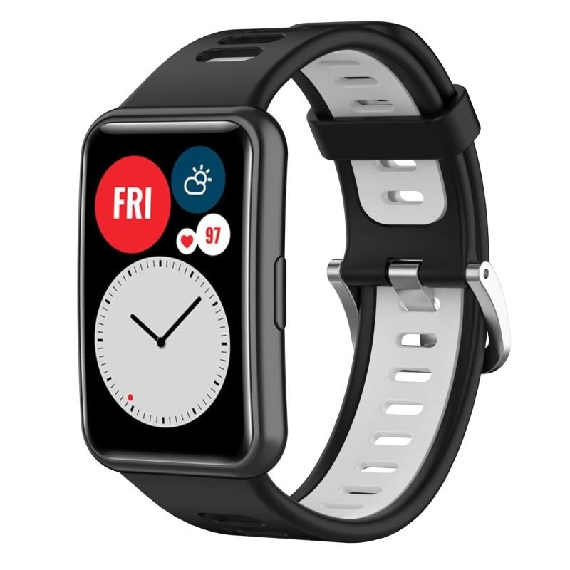 For Huawei Watch Fit New Two-Color Silicone Watch Band(Black+White)