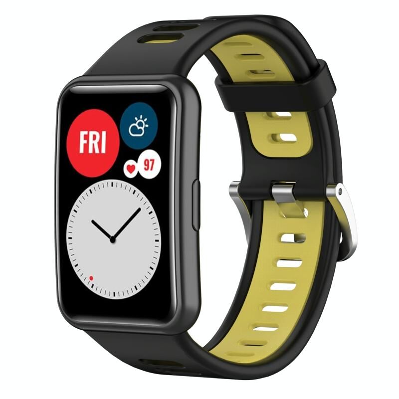 For Huawei Watch Fit New Two-Color Silicone Watch Band(Black+Yellow)