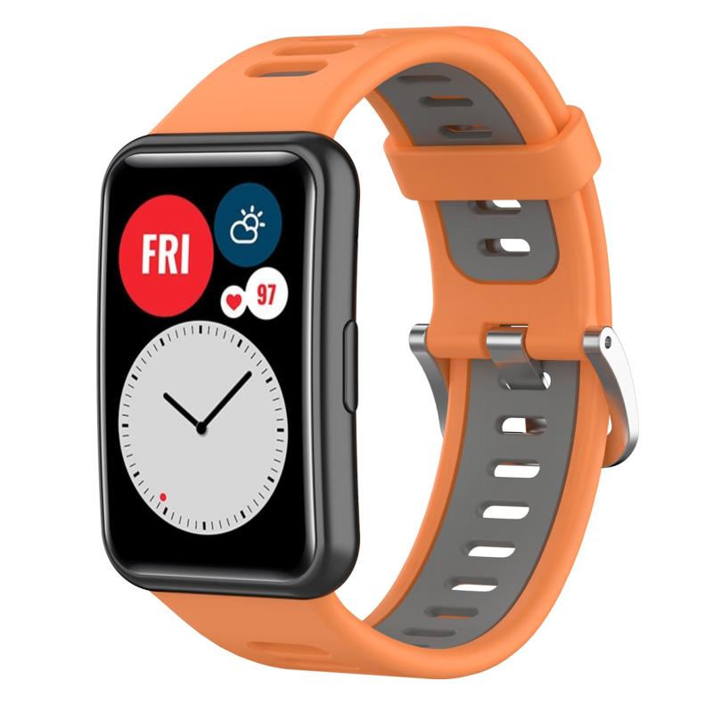 For Huawei Watch Fit New Two-Color Silicone Watch Band(Orange+Gray)