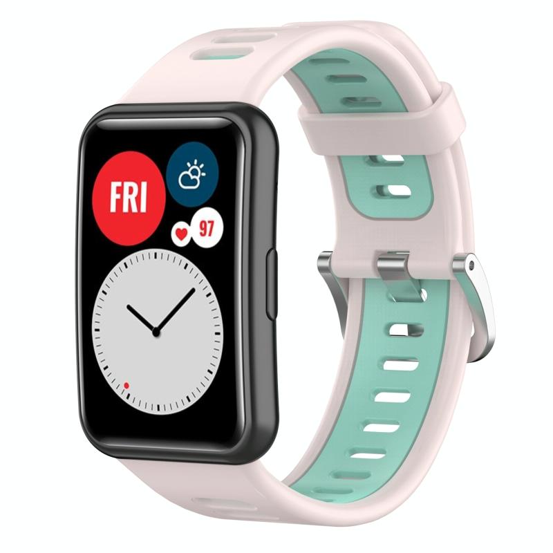 For Huawei Watch Fit New Two-Color Silicone Watch Band(Pink+Teal)