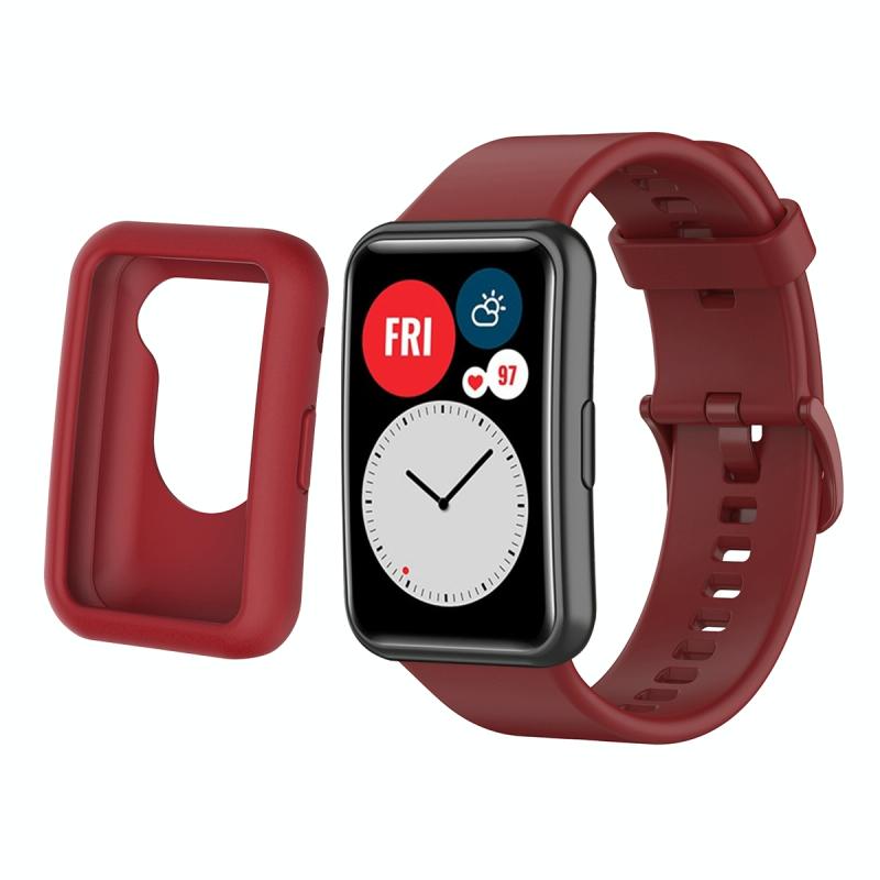 For Huawei Watch Fit Protective Silicone Case + Silicone Watch Band Kit(Wine Red)