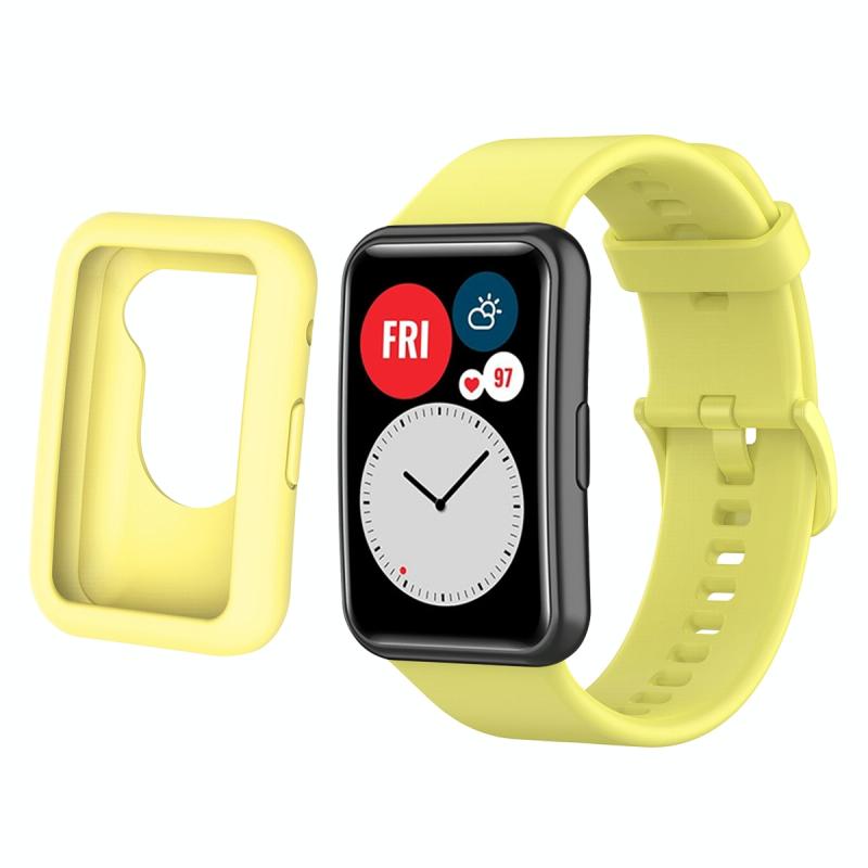 For Huawei Watch Fit Protective Silicone Case + Silicone Watch Band Kit(Yellow)