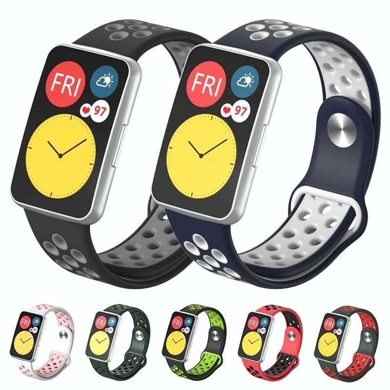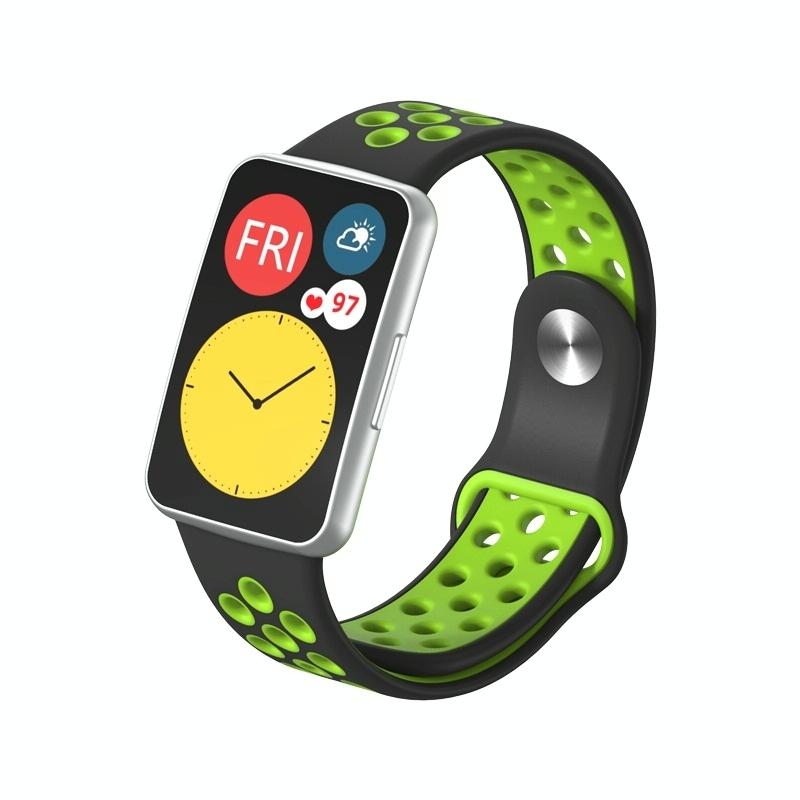 For Huawei Watch Fit Silicone Two-color Reverse Buckle Watch Band(Black Green)