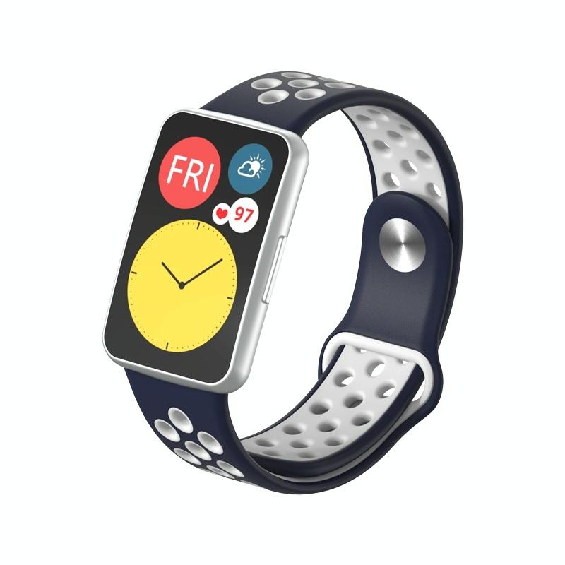 For Huawei Watch Fit Silicone Two-color Reverse Buckle Watch Band(Blue White)