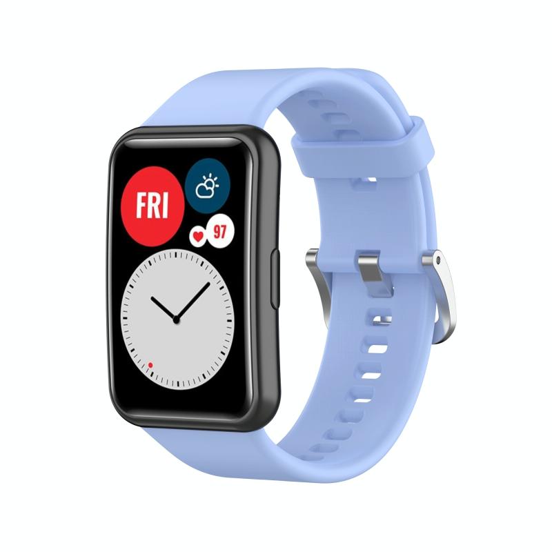 For Huawei Watch Fit Silicone Watch Band with Stainless Steel Buckle(Chrysanthemum Blue)