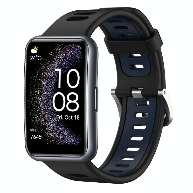 For Huawei Watch Fit Special Edition Two-Color Silicone Watch Band(Black+Blue)