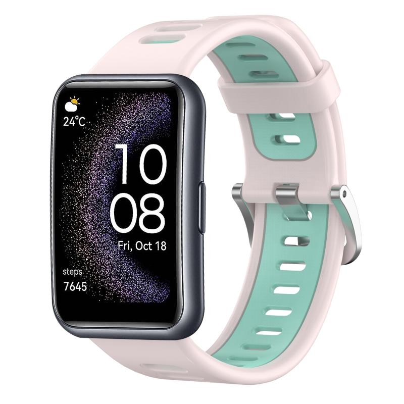 For Huawei Watch Fit Special Edition Two-Color Silicone Watch Band(Pink+Teal)