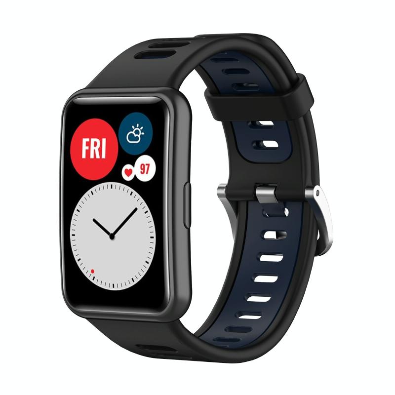 For Huawei Watch Fit Two-color Silicone Watch Band(Black+Blue)