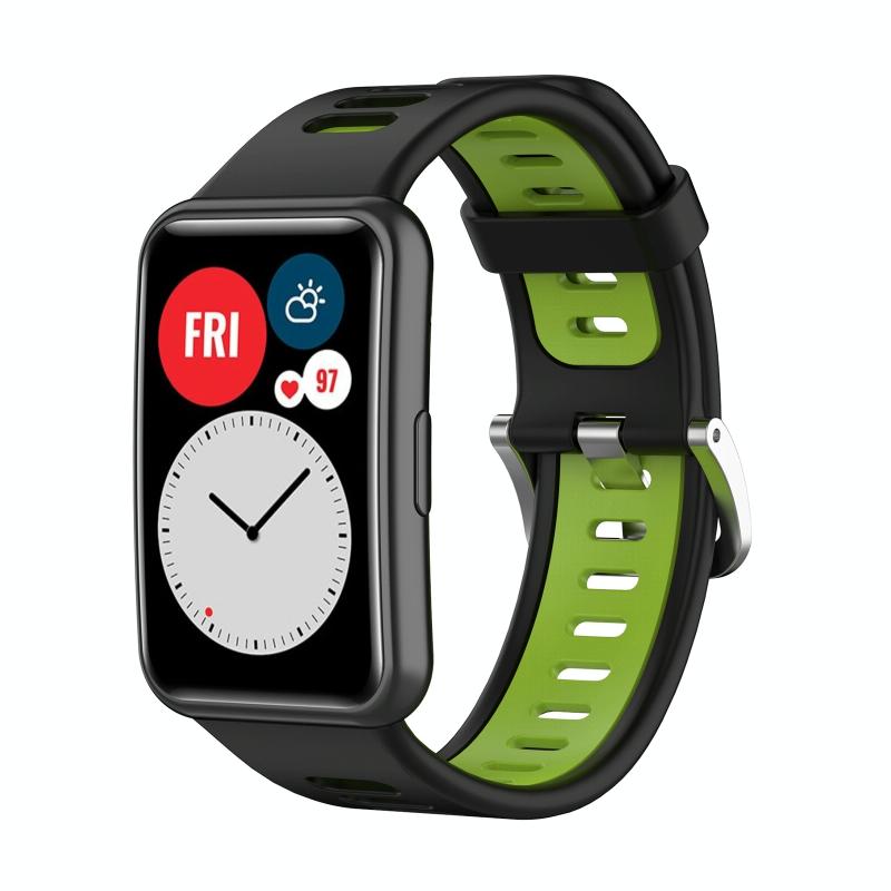 For Huawei Watch Fit Two-color Silicone Watch Band(Black+Green)