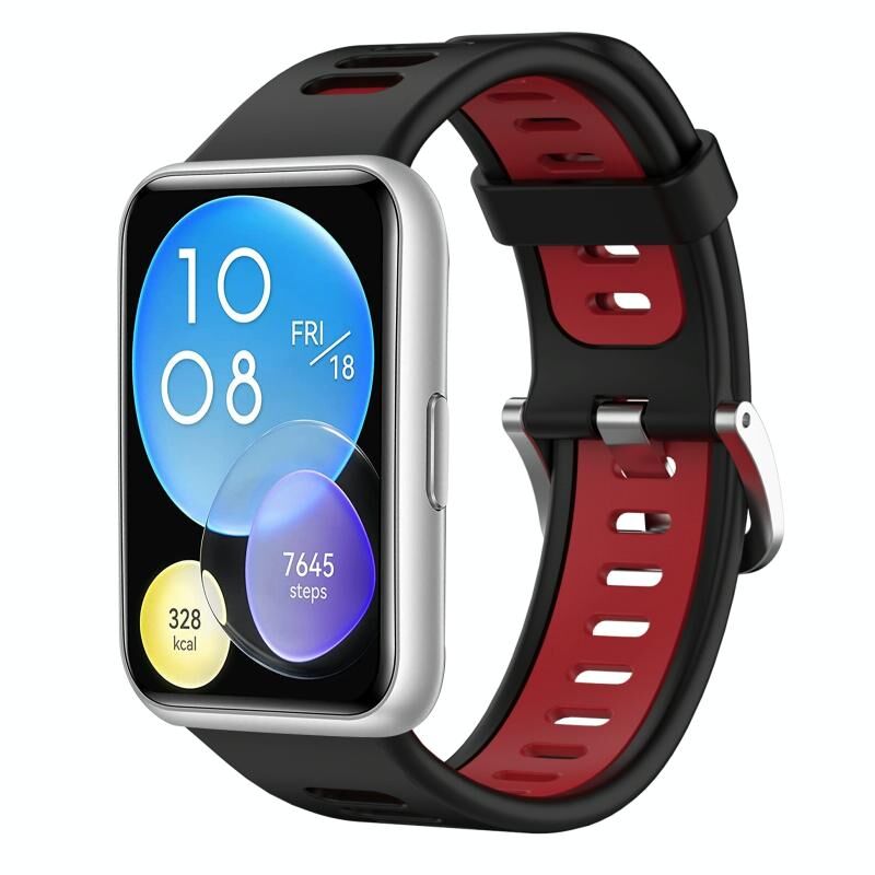 For Huawei Watch Fit Two-Color Silicone Watch Band(Black+Red)