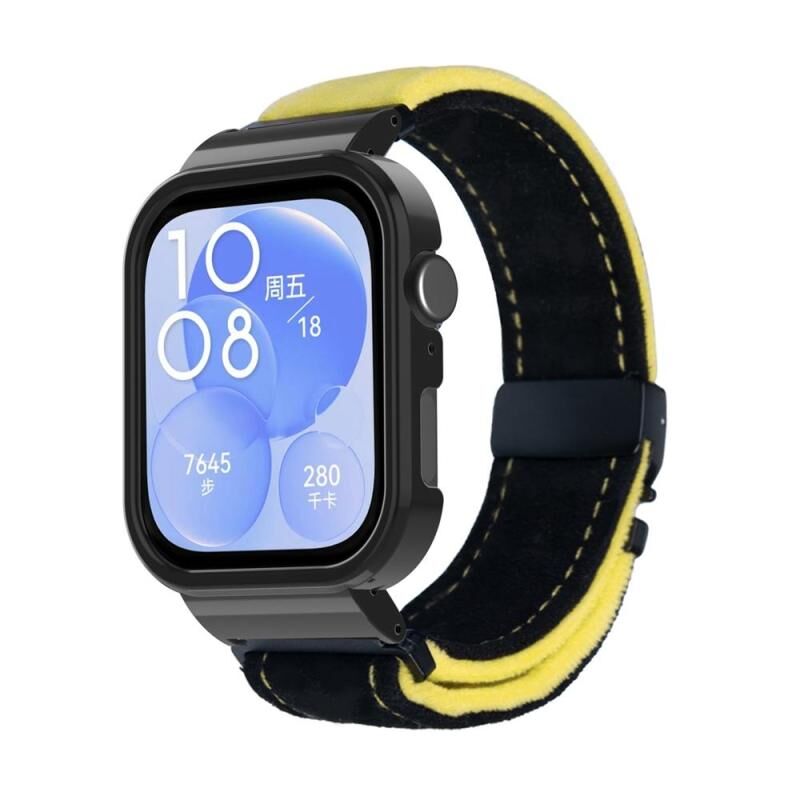 Για το Huawei Watch Fit3 Brushed Metal Black Frame Watch Band (Μαύρο κίτρινο)