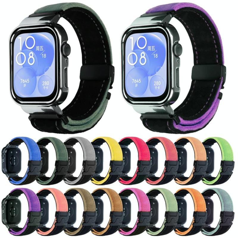 For Huawei Watch Fit3 Brushed Metal Silver Frame Watch Band(Black Light Brown)