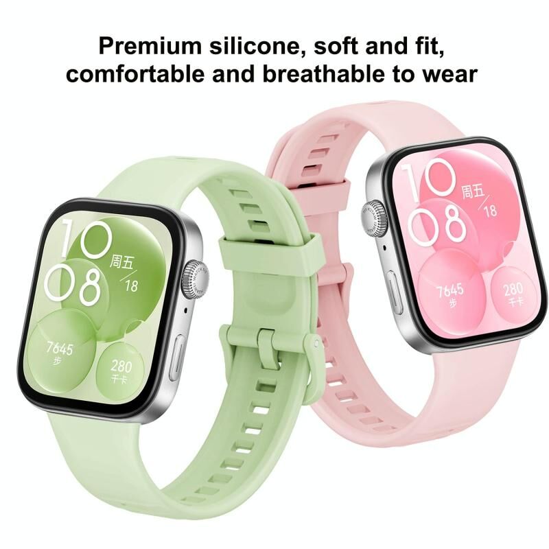 For Huawei Watch Fit3 / Fit4 / Fit4 Pro Colorful Buckle Solid Color Silicone Watch Band(Green)