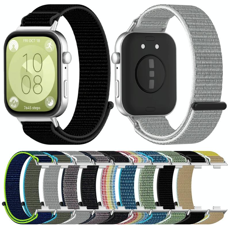 For Huawei Watch Fit3 Nylon Loop Hook and Loop Fastener Watch Band(Grey Blue)