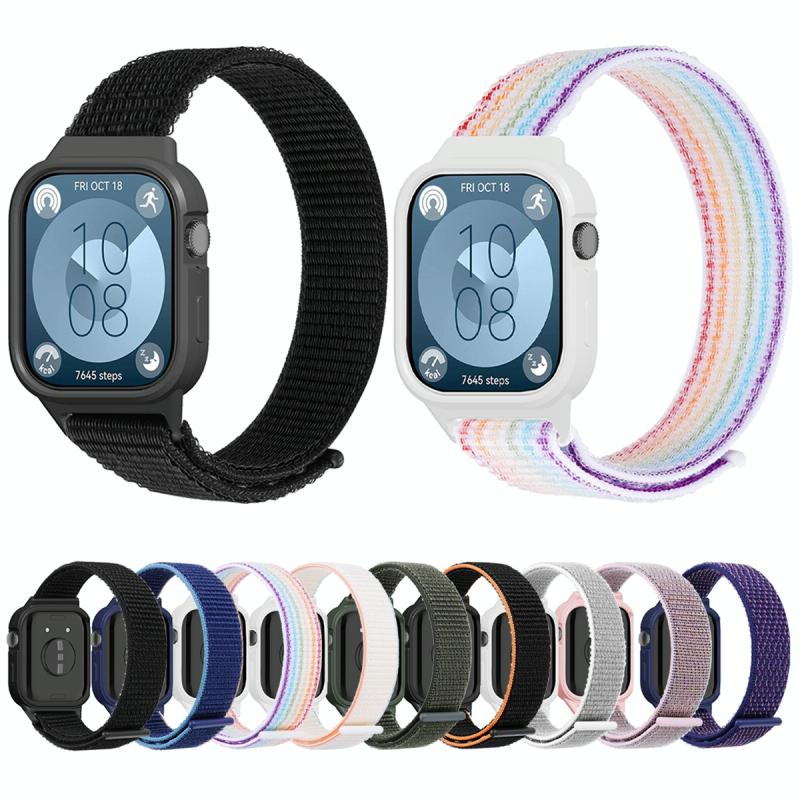 For Huawei Watch Fit3 Nylon Loop Integrated Watch Band(Navy Blue)