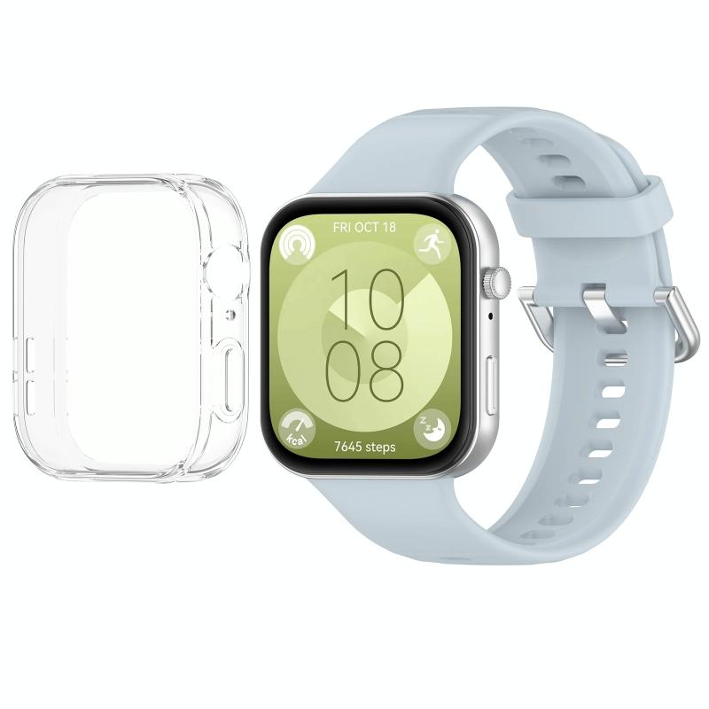 For Huawei Watch Fit3 Silicone Soft Watch Band + Clear Watch Protective Case Set(Light Blue)