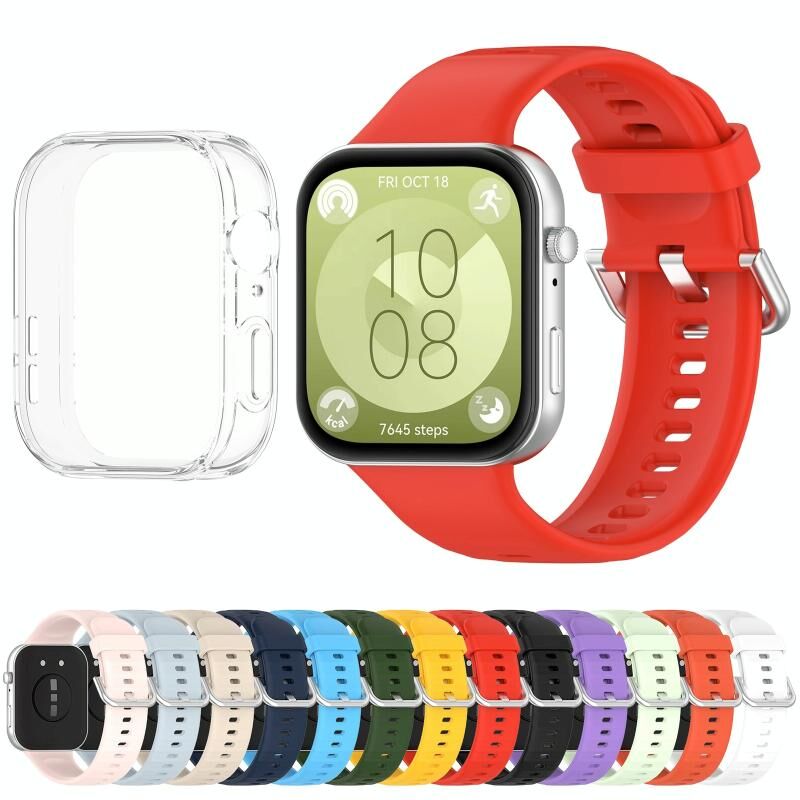 For Huawei Watch Fit3 Silicone Soft Watch Band + Clear Watch Protective Case Set(Sky Blue)