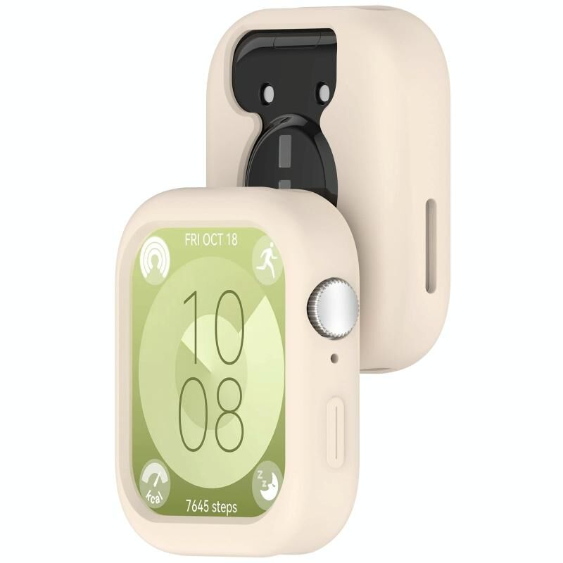 For Huawei Watch Fit3 Solid Color Silicone Watch Protective Case(Ivory White)