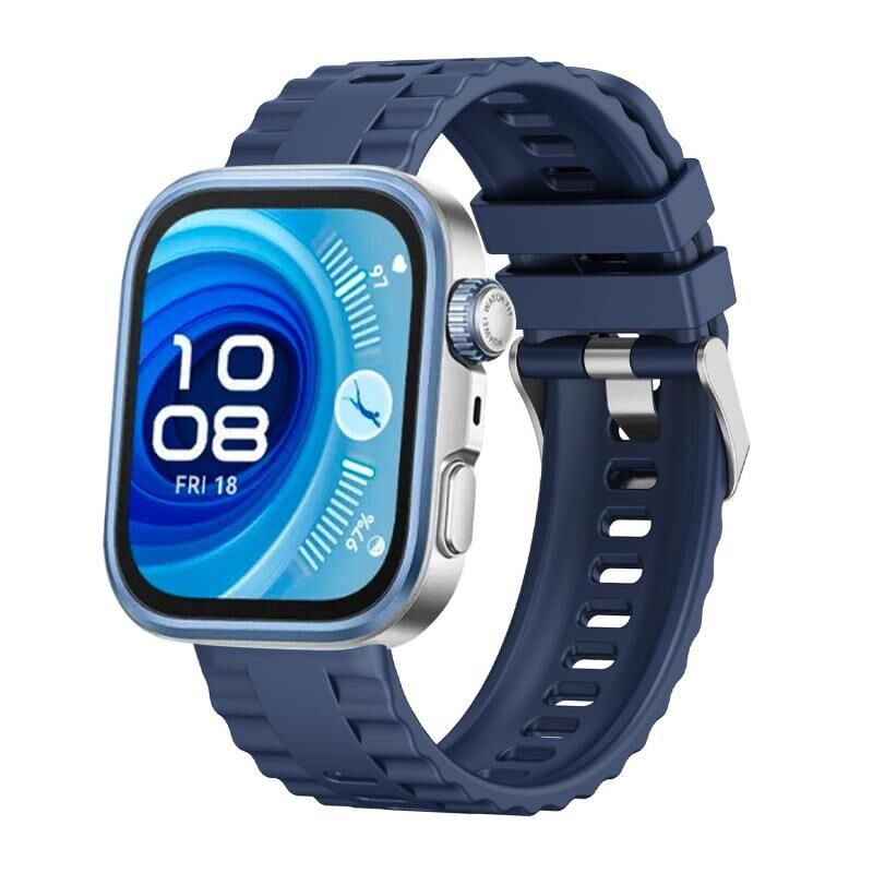 For Huawei Watch Fit4 / Fit4 Pro / Fit3 Metal Head Grain Pin Buckle Silicone Watch Band(Midnight Blue)