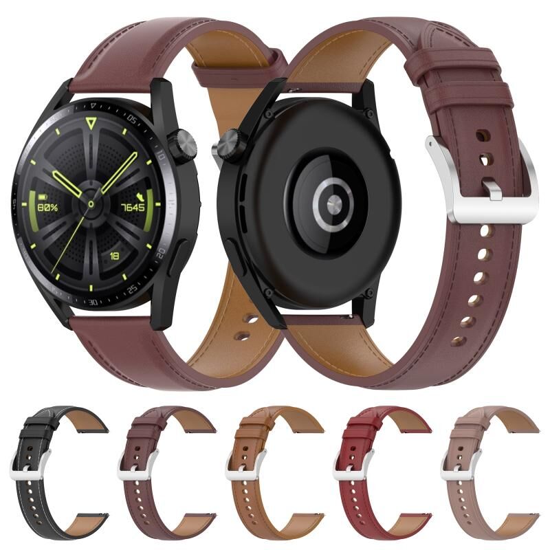 Για Huawei Watch GT 2 42mm Δερμάτινο Λουρί με Υφή Μοσχαριού και Ραφή (Μαύρο)