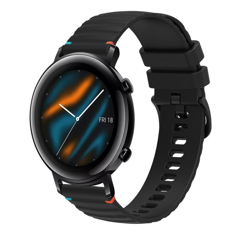 For Huawei Watch GT 2 42mm Wavy Dotted Stitched 20mm Silicone Watch Band(Black)