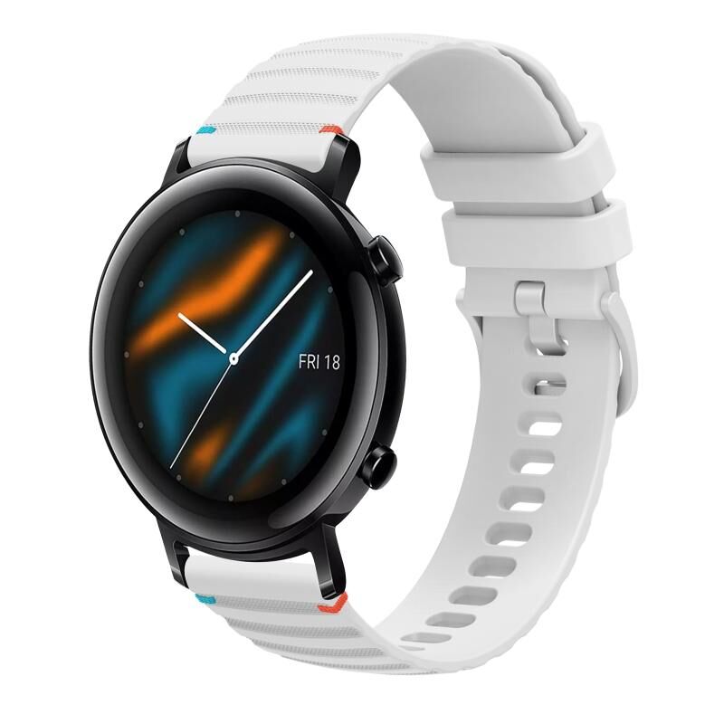 For Huawei Watch GT 2 42mm Wavy Dotted Stitched 20mm Silicone Watch Band(White)